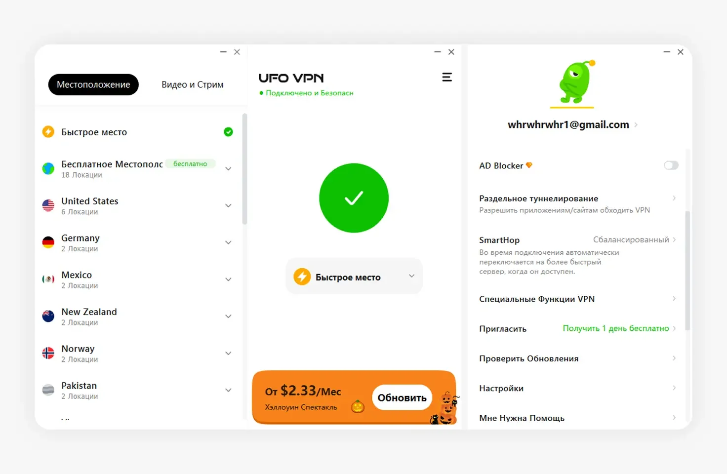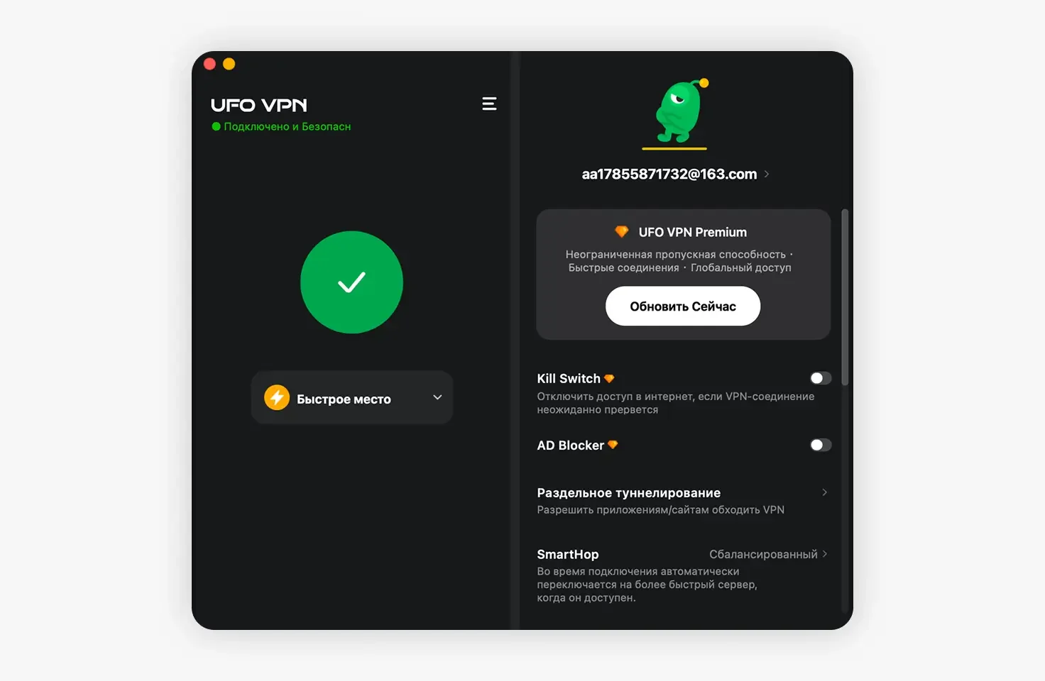 Если вы используете VPN, попробуйте выбрать другой сервер или протокол. Надёжный сервис, например UFO VPN, обеспечивает безопасное подключение и стабильный доступ к вашему аккаунту без перебоев.
